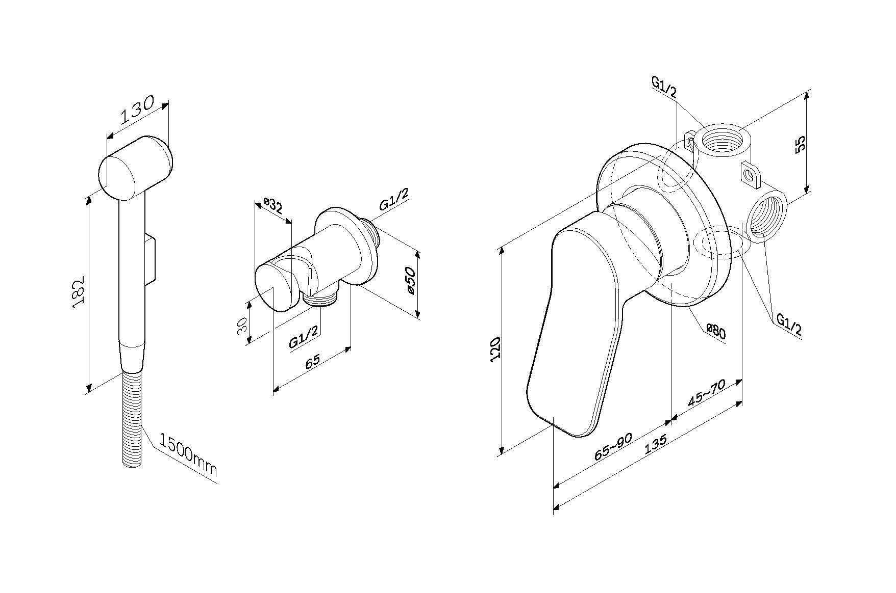 внутренняя часть смесителя / гигиеническая лейка / настенный держатель / смеситель / шланг для душа / шланговое подключение